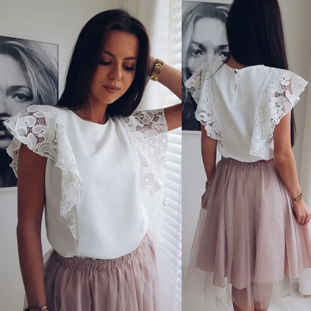 New New Summer Women Tops Chiffon Lace Casual Shirt Ladies Sleeveless O-neck Loose Blouse White Tops