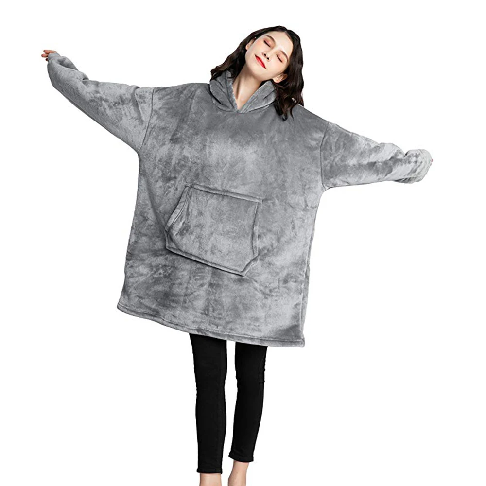 New Women Oversized Hoodie Blanket Sweatshirt Coral Fleece Blanket Warm Winter Coat Ladies Giant Hoody
