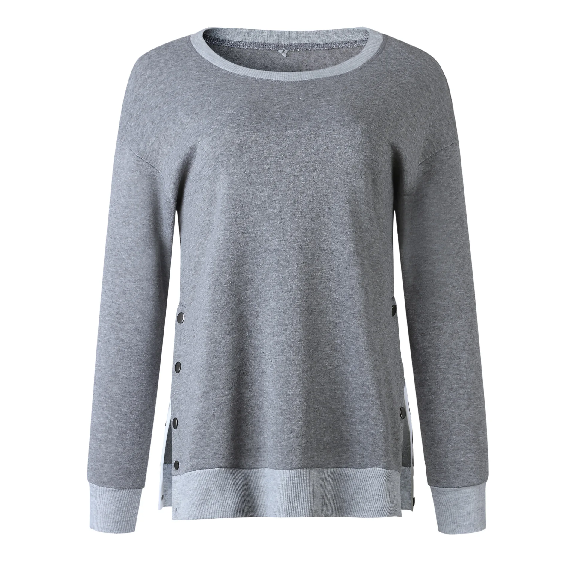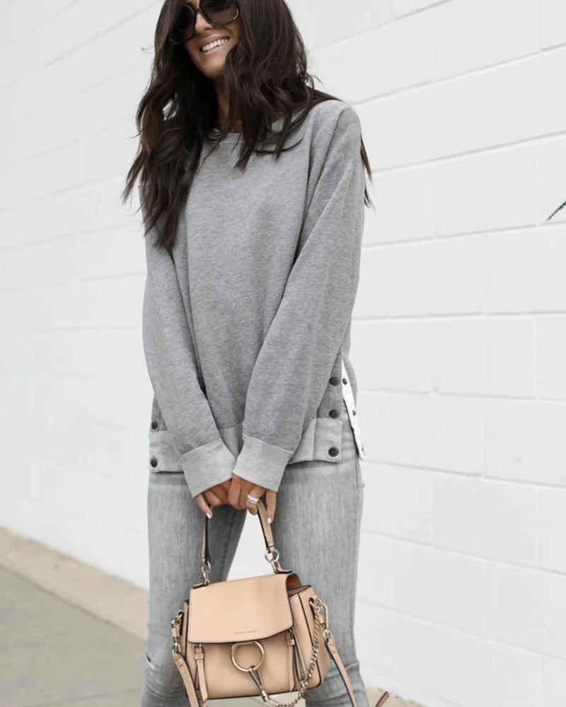 Buy Fashion Sweatshirts Women Long Sleeve O-neck Split Hem Tops Casual Loose Elegant Female Sport Outwe