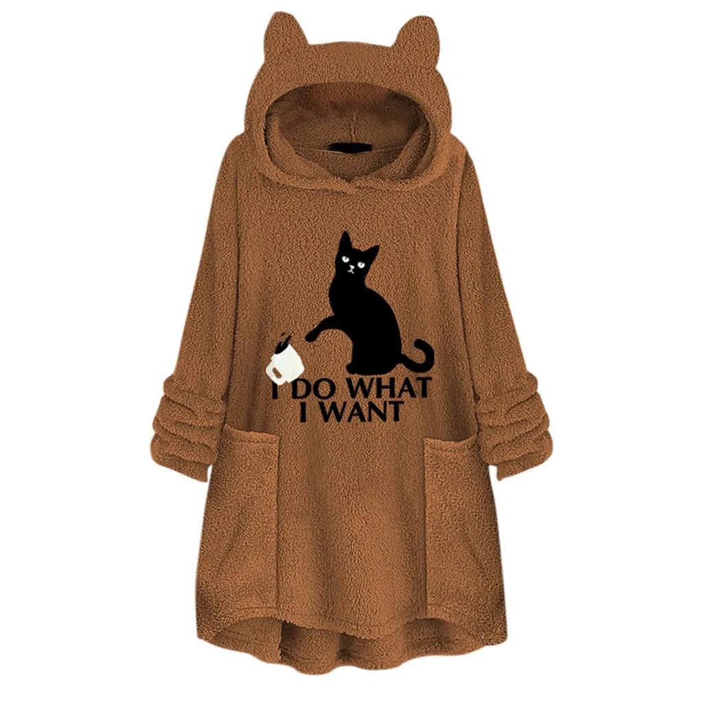 Buy Jaycosin Fashion Women Simple Fleece Embroidery Cat Ear Sweatshirt Stylish Long Sleeve Comfortable