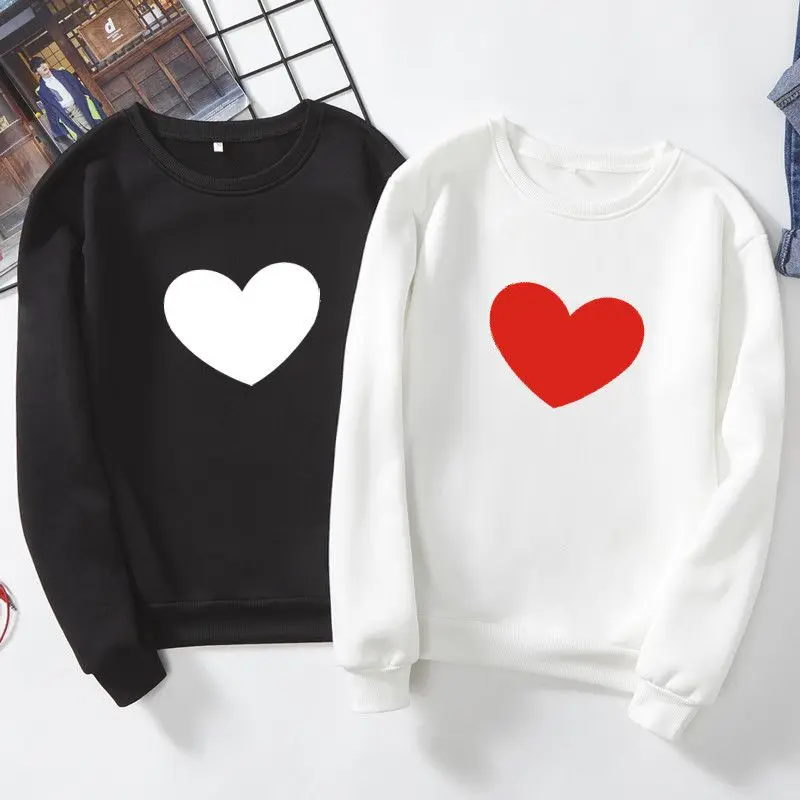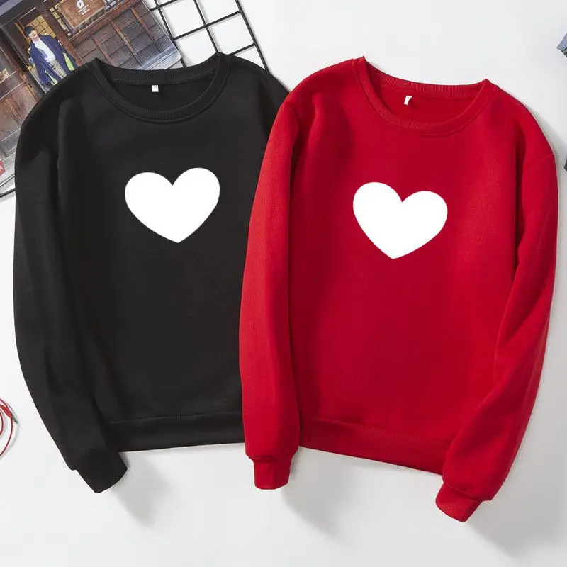 Best Korean Style Kpop Hoodies Women Heart-shaped Print Women's Sweatshirt Loose Round Neck Long-sleeved