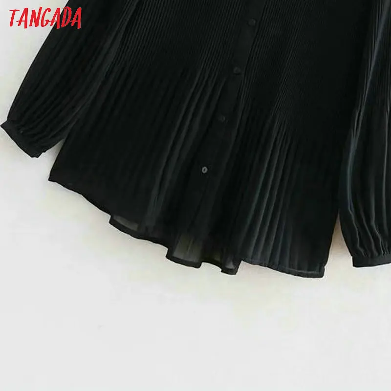Promo Tangada women elegant balck chiffon blouse office ladies o neck pleated long sleeve shirts female c