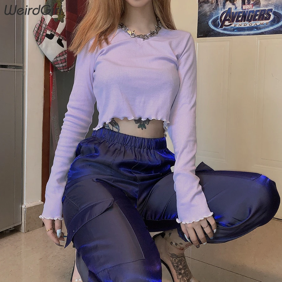 Promo Weirdgirl hoodies Autumn Women Full Sleelve V-Neck Sweatshirts Harajuku Solid Crop top Fashion Slim